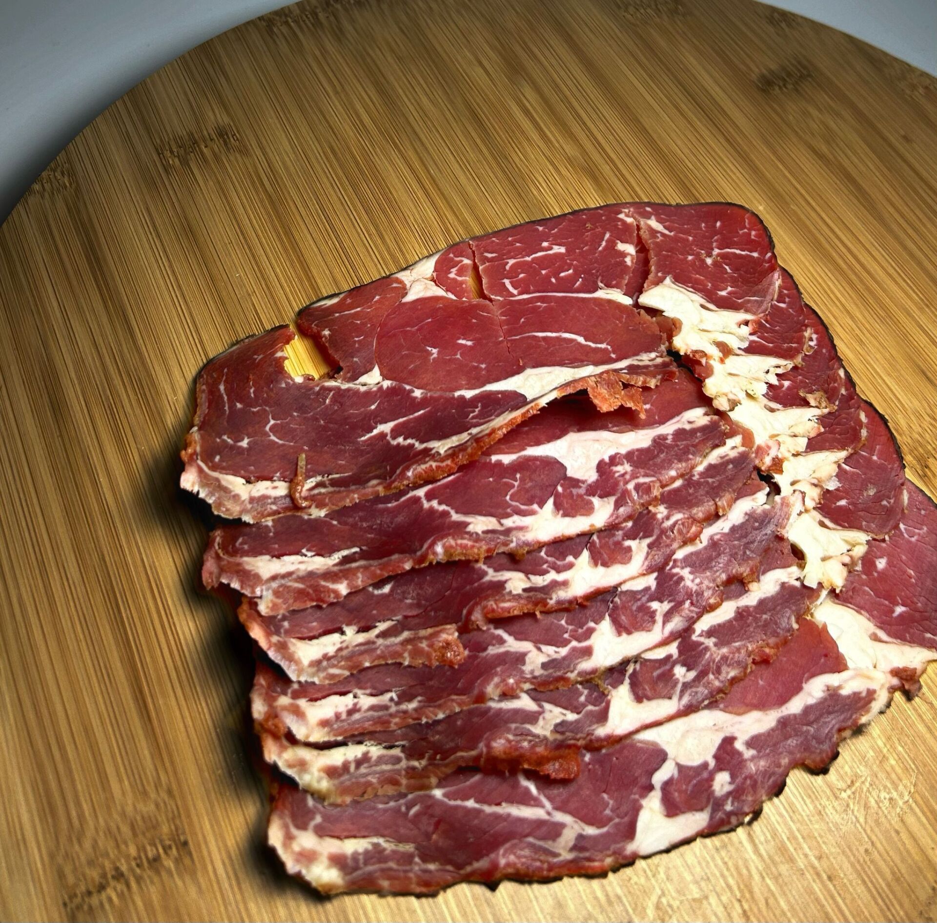 Özel seçilmiş antrikot etinden hazırlanan bu pastırma, yoğun aroması ve yumuşak dokusuyla damaklarda unutulmaz bir tat bırakır. Kahvaltıdan atıştırmalığa, çeşitli yemeklerde kullanıma uygun olan ürün, doğal baharatlarla lezzetlendirilmiştir. Kalite ve lezzeti bir arada sunar.